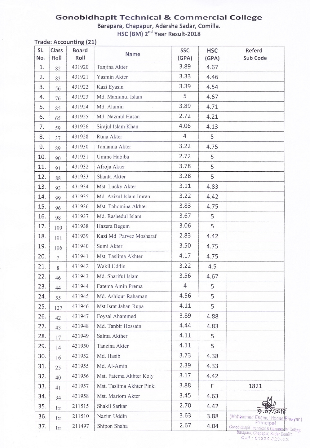 HSC (BM) Result 2018 (Accounting)