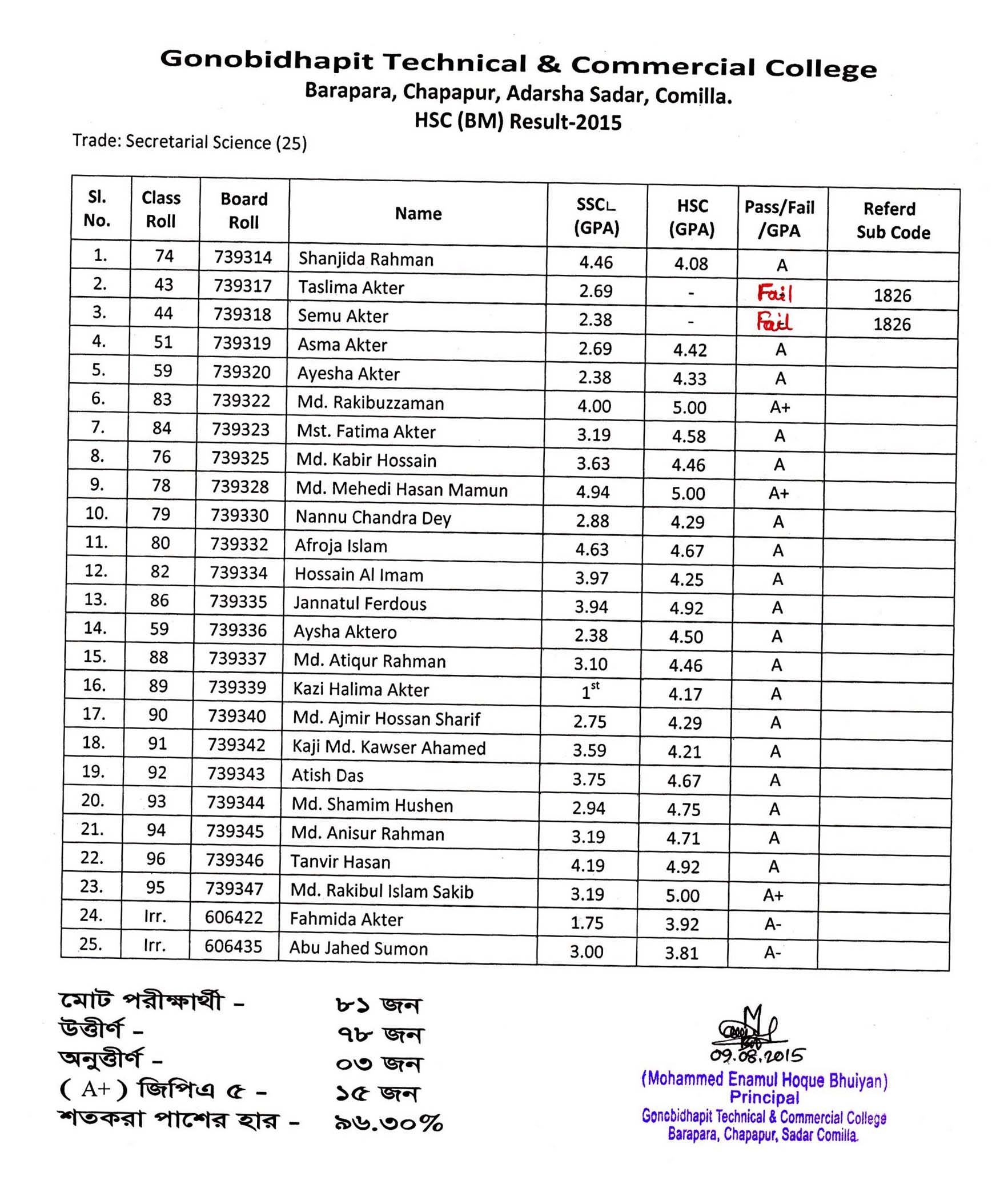 বোর্ডের ফলাফল