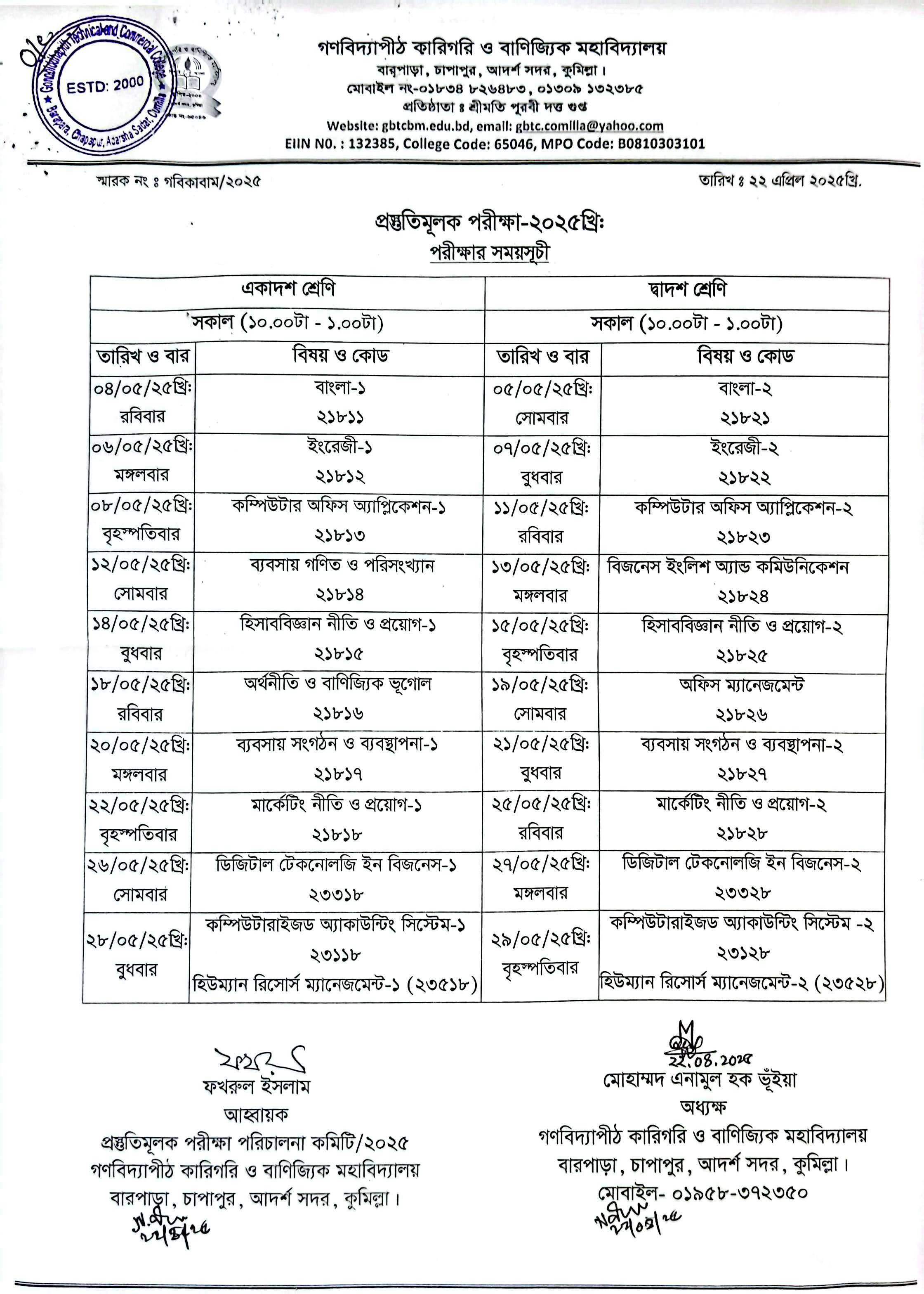 প্রস্তুতিমূলক পরীক্ষা-২০২৫ এর রুটিন।