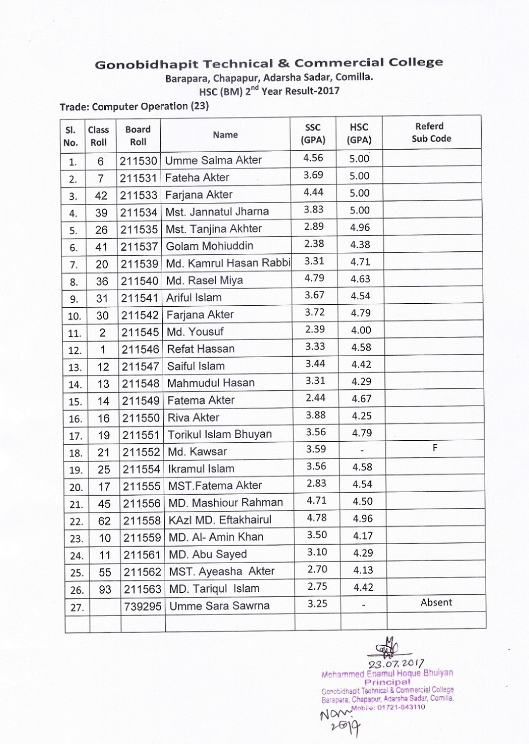 HSC (BM) 2017 (Computer Operation)